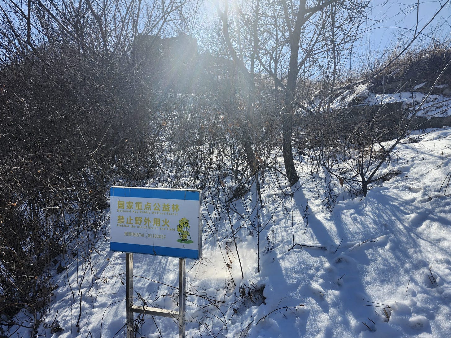 We also saw several signs during the day warning against kindling fires in the woods, with a very Chinese anime tiger mascot seemingly emulating the classic “Smokey Bear” U.S. Forest Service campaign against forest fires. Ken Burns called national parks “America’s best idea,” and in recent years China been rapidly rolling out new protected areas and a formal National Park system explicitly modeled on the American example. That’s a legacy my home country can be extremely proud of.