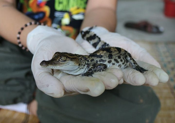 A new report from the Wildlife Conservation Society chronicles how community conservation efforts in the Xe Champhone wetlands of Laos have successfully safeguarded a vital stronghold for the critically endangered Siamese crocodile (Crocodylus siamensis). They’ve adopted an Anthropocene-ready interventionist approach, collecting eggs from wild nests and “head-starting” hatchlings in captivity until they reach a size less vulnerable to predators. Hundreds of head-started hatchlings have been released and hundreds more are being reared. Great work!